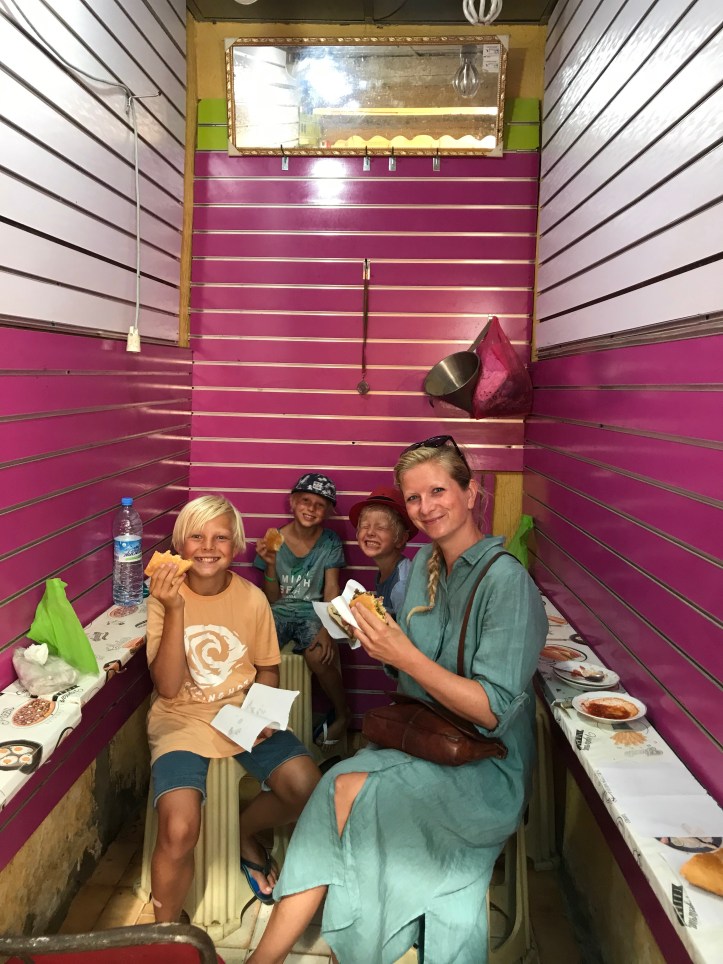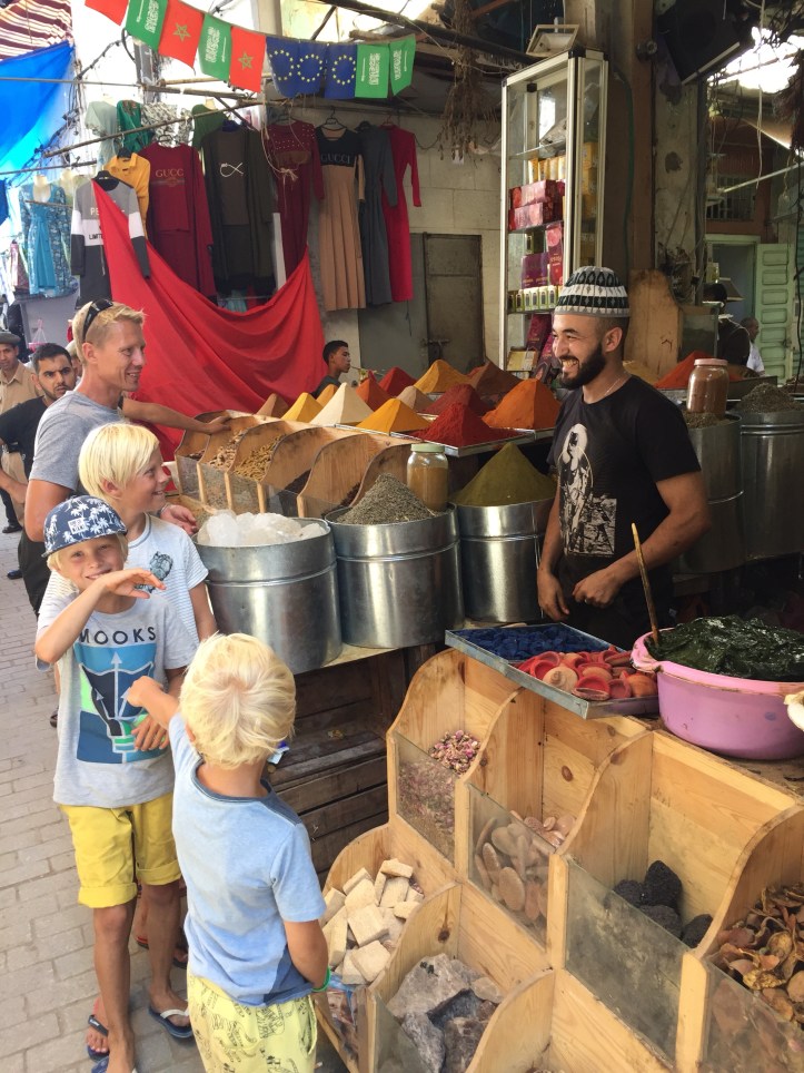 Nå har vi vært her i Marokko i nesten to uker. Tiden har gått fort, og det er mange inntrykk å fordøye og legge i skattkista. En av de tingene som jeg kommer til å huske best fra besøket her er vennligheten. “Merhaba”, eller velkommen er et uttrykk vi har hørt igjen og igjen. Og vi har følt oss velkommen! Folk smiler og hilser og guttene får mye oppmerksomhet for sitt blonde hår. Det har blitt mye rusking i håret og kyssing på kinnene. Sverre er ikke alltid så komfortabel med denne oppmerksomheten og tar imot kyssene med øynene presset igjen til stor fornøyelse for kysserne!