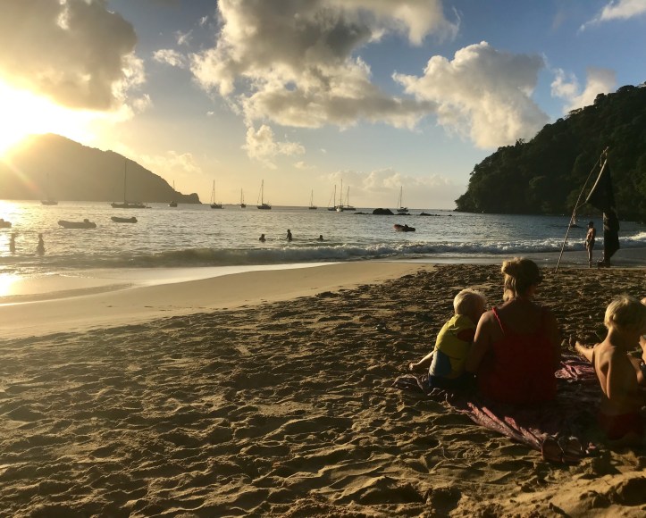 Når vi tar kveldsbadet for å kjøle av kroppen før vi legger oss i senga glitrer morilden i takt med svømmetakene og stjernehimmelen stråler over oss. I Pirate bay er det ikke mange forstyrrende lyskilder, bare de ni andre ankerlanterne fra nabobåtene og noen få gatelys fra Charlotteville lenger inne i bukta. Lyden av bølgene mot land vugger oss i søvn.