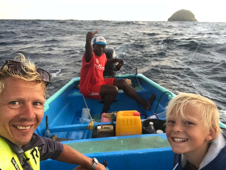 I byen kjenner alle alle og vi kjenner etter hvert mange også. Vi låser aldri båt eller dingy, det føles helt trygt her. De eneste båtene som drar forbi oss er de lokale fiskerne som drar ut på feltet hver morgen og som sjekker innom oss for å høre om vi vil ha del av dagens fangst. En dag får Trygve og Ragnar være med en av fiskerne ut. De blir hentet klokken seks på morgenen.