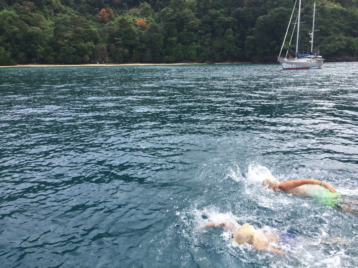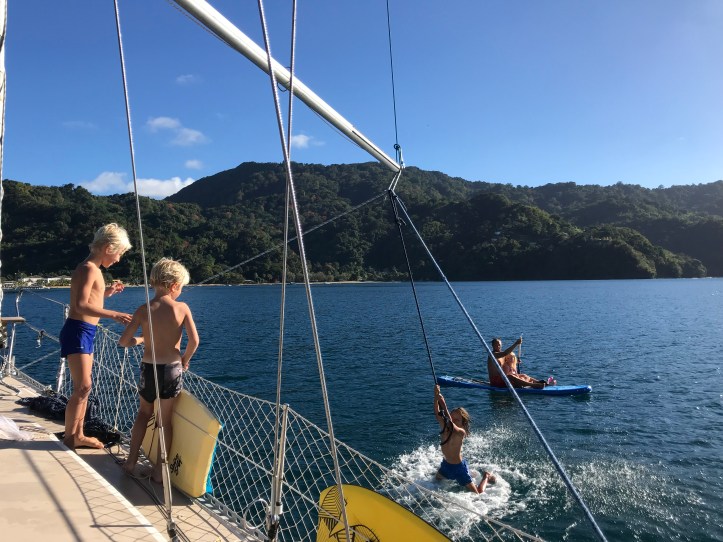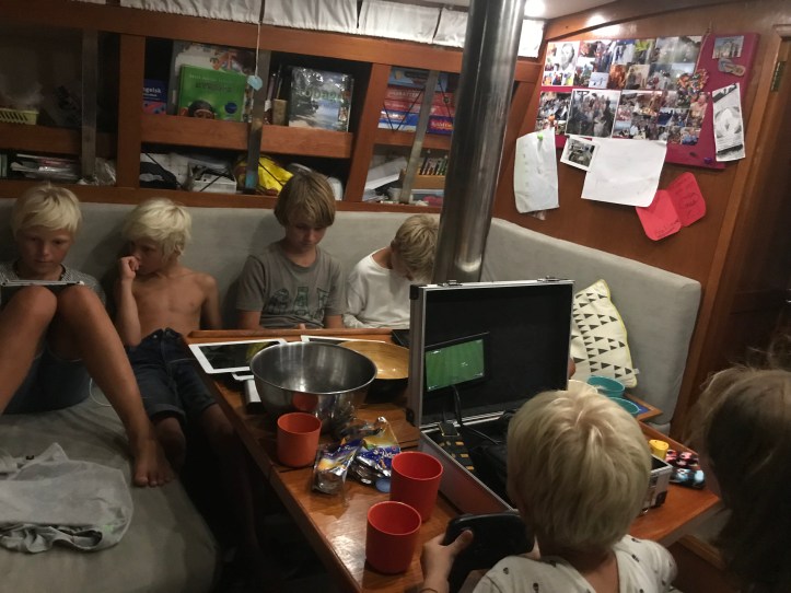Både Katja og La vie har samme tempo som oss, vi nyter alle å være litt på steder, få det litt under huden og lage oss en hverdag på stedet. Vi blir et tett, lite nabolag der barna suser med dingyen mellom båtene på vennebesøk eller for å hente noen for et strandhogg, vi låner sukker og verktøy av hverandre og hjelper hverandre med barnepass eller fiks og mekk. Barna stortrives med mange lekekamerater.