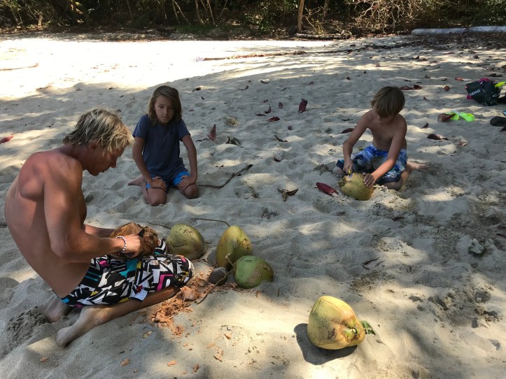 Med Katja og La Vie tar vi flere søndagsturer på skilpaddestranda som nå blir til kokosnøttstranda for oss. Denne fantastiske stranda har vi helt for oss selv og det er ikke fritt for at vi får litt Robinson Crusoe stemning av det hele.