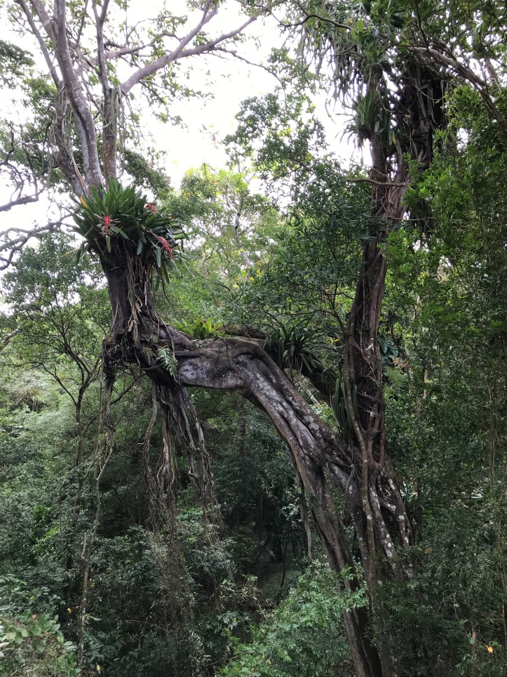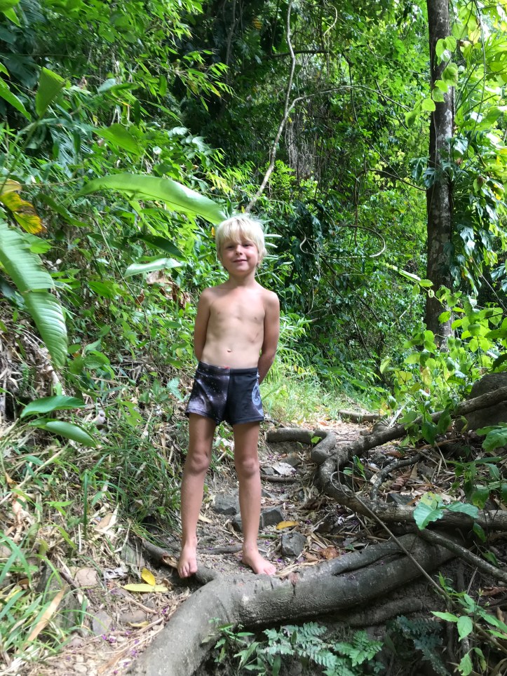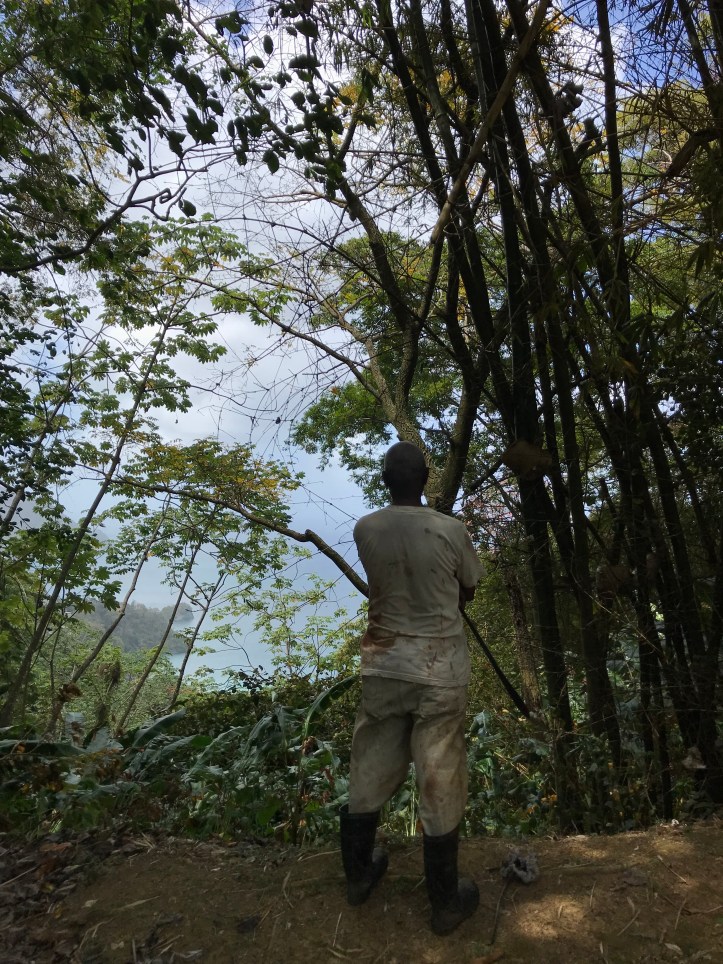 Den lokale guiden Dean har tilbydd oss sine tjenester siden vi ankom Charlotteville og en dag slår vi til og legger av sted inn i jungelen. Mulig vi er litt vel mange som tramper oss oppover stien, for det er lite uttelling på villdyrfronten, men de mest oppmerksomme får med seg både ekorn, kolibrier, firfisler, papegøyer og den vakre motmoten – Tobagos nasjonalfugl. Men jungelstien er uansett vakker og spennende! Og det er herlig å bevege seg litt igjen for slappe seilerkropper!