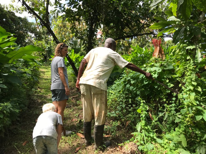 På veien stopper sjåføren ved et kakaotre så vi får smake.