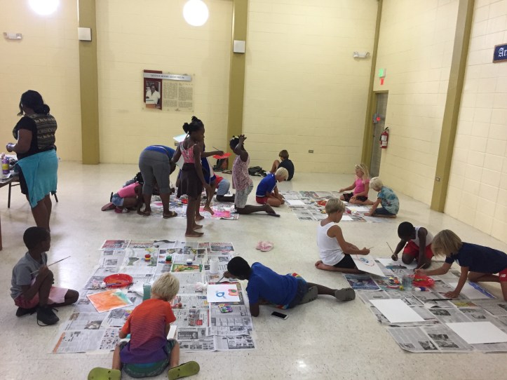 Den første uka har vi skole på båten og bading i hvert friminutt. Ragnar og Sverre tar barnehagen på Charlottevilles sjarmerende lille bibliotek. Og etter hvert flytter også Sira-skolen inn på biblioteket. Bading i friminuttene blir byttet ut med lesing eller fotball på banen rett utenfor.