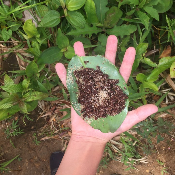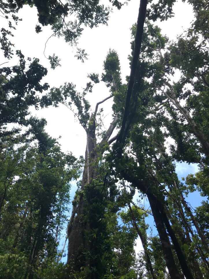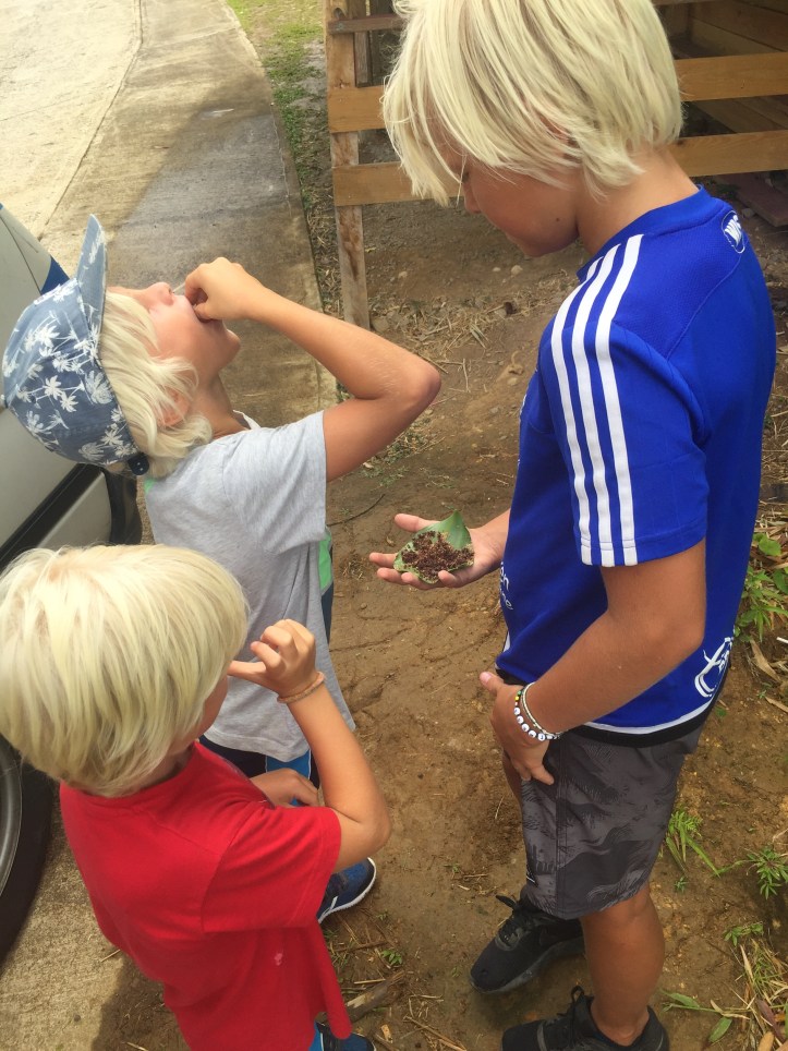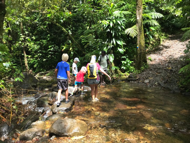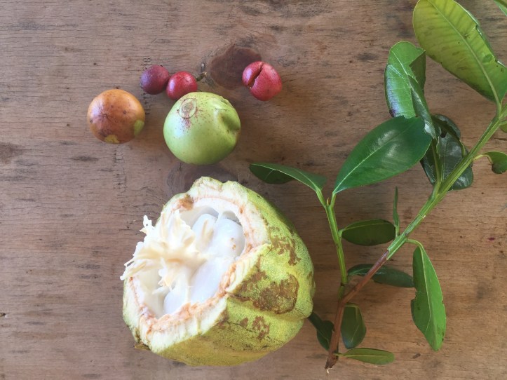 På veien tar han stadige stopp for å plukke en frukt eller et bær vi må smake og gjette hva er (dvs gå på slang, vi lurer litt på om eierne av trærne vet at avlingen deres inngår i en guidet tur…) Etter Tobago er det gøy å se at vi jo har kontroll på det meste, til guidens lette humoristiske irritasjon.