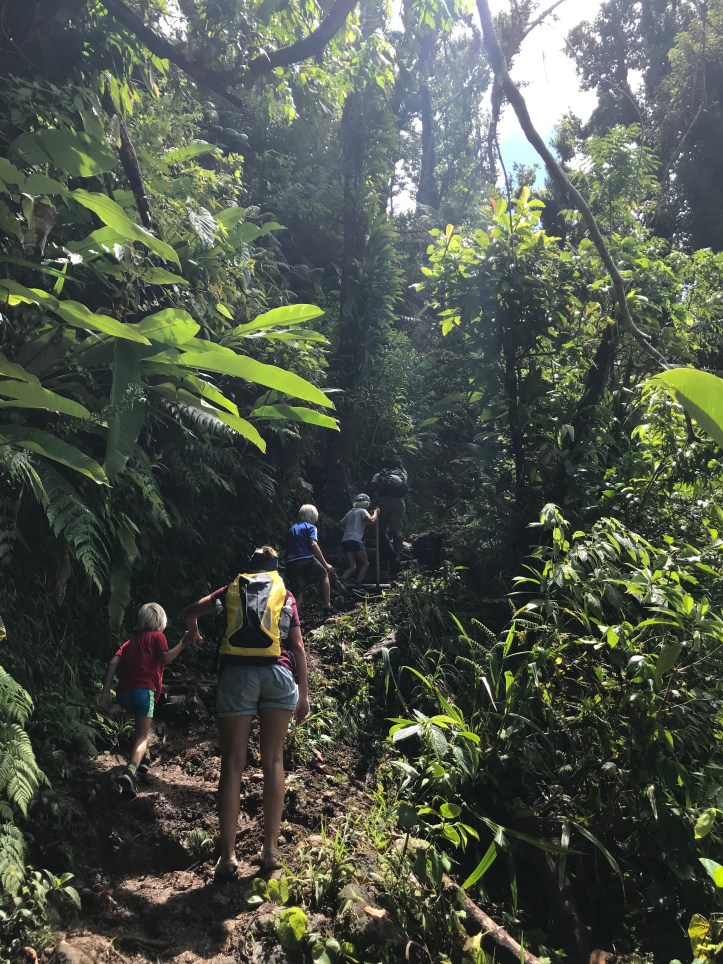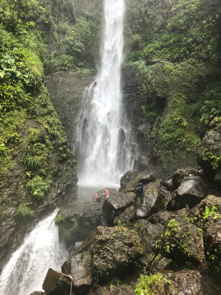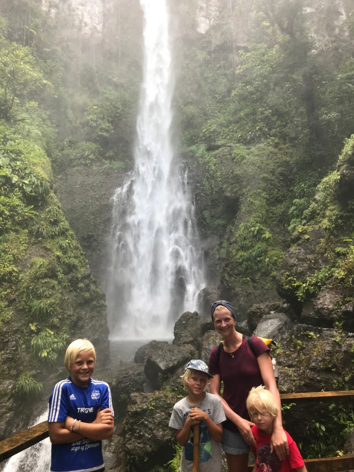 Det sies at Dominica er den eneste øya Columbus ville kjent igjen. Dominica har som sin største forse er sin storslåtte natur, for storslått er det! Det er så grønt og frodig at du ikke kan annet enn å fascineres over naturens mangfoldighet. Og fossene får selv en garvet nordmann til å måpe! Vi leier guide som tar oss med på tre utrolig plasser. Seacat er sjefen for firmaet som har bøya vi ligger på, han driver både diverse service for yatchtier og som turguide. I guideboka vi har, som ble skrevet sesongen før orkanen, er det bildet av en flott brygge som de hadde til firmaet sitt. Brygga ble totalskadd i orkanen, og har grunnet praktiske og økonomiske utfordringer enda ikke kommet på plass igjen.