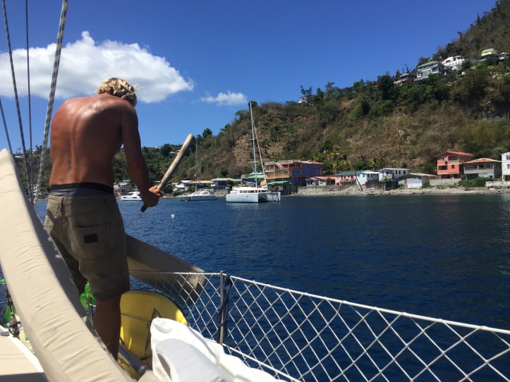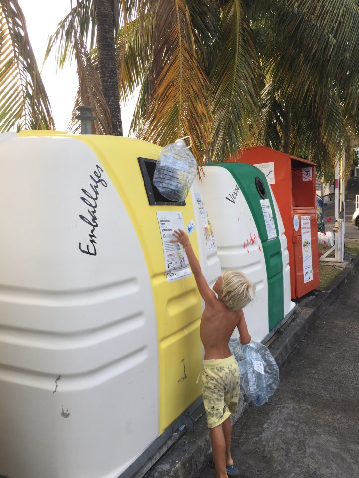 Vårt pitstop på Martinique gav oss en lørdag akkurat lang nok til å kjøpe og skifte saltvannspumpe på motoren, storhandle på Leaderprice (ikke at vi var tom siden sist, men litt topping av skottene når vi først hadde butikk med dingyedock er jo ikke å forakte!) og toppe opp diesel og vann, i tillegg til å kvitte oss med søppel. Det føles litt bedre å kaste søppel på en øy der en faktisk kildesorterer, det er jo ikke hverdagskost i Karibien. Og mange øyer har et stort søppelproblem! Og det hjelper ikke på dem med drøssevis av seilere som er innom og kvitter seg med søppelet sitt der…