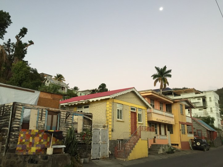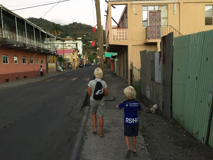 Det er likevel stort sett røft i Roseau, men likevel god stemning. Og folk er vennlige og ønsker oss velkommen.