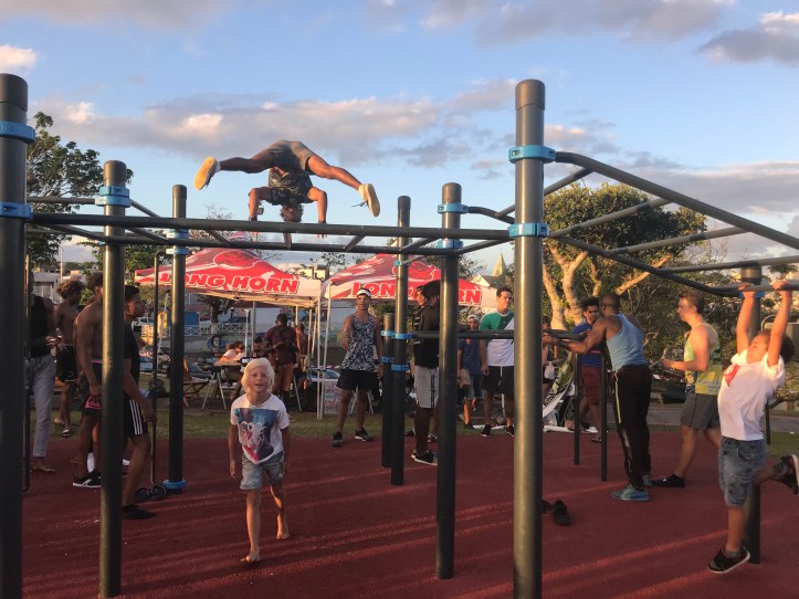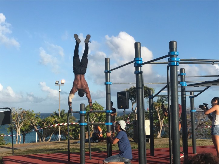 I byen Gosier kom vi over det som visstnok var det karibiske mesterskapet i Street workout… Og de som kjenner gutta godt forstår nok når vi sier at det ikke var lett å få de med seg hjem til Sira igjen…!