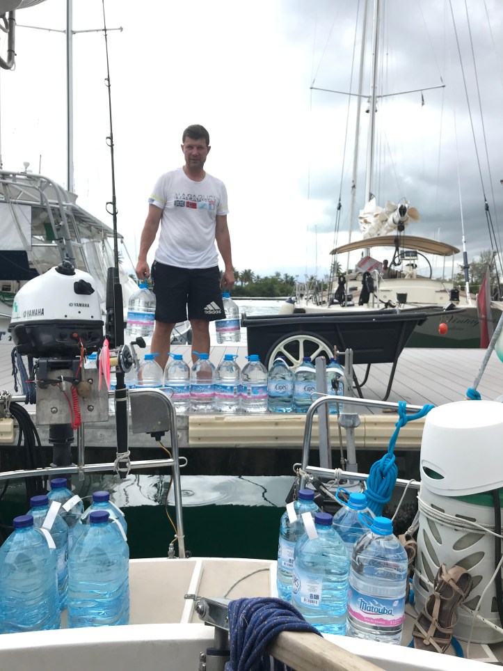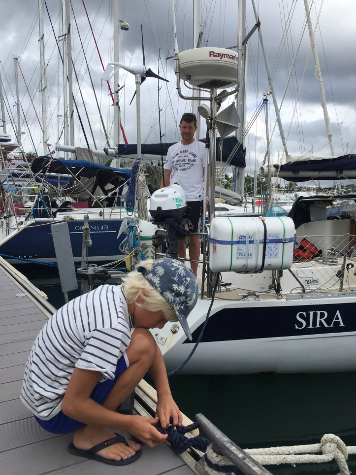 Jammen rart å være tilbake til marinalivet for oss som har ligget på anker siden Kapp Verde i begynnelsen av januar. Bare å gå i land på brygga når en skulle handle, ikke drive å styre med dingye og nedsalta matvarer og klær. Og ikke minst kunne spasere opp og ta seg en dusj! Det skal innrømmes at det tross alt var litt deilig, selv om vi har følt oss freshe nok etter sjøvannsbad vi!