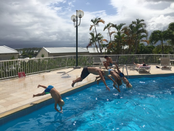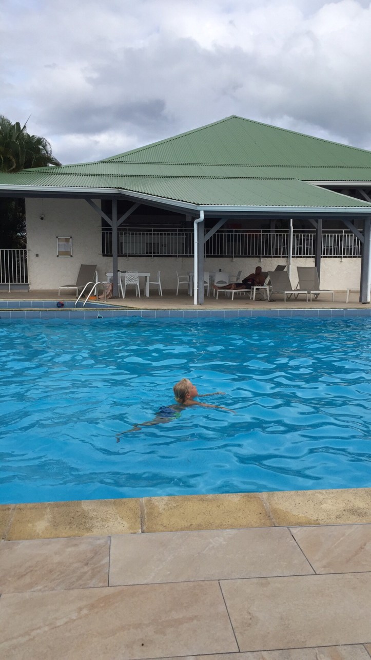Vi har funnet oss et 2 stjernes hotel rett ved marinaen, men bassenget får minst 5 stjerner av gutta. Og Sverre ble førstemann til å prøve ut bassenget!