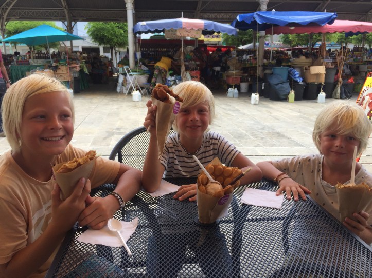Hjemturen fra festen ble en lang affære, da Sverre mente han måtte øve opp sine sterke bein og derfor avslo korresponderende buss fra busstasjonen i Point a Pitre. Så vi endte opp med å gå en hel time gjennom de rareste gater, men Sverre beviste sine sterke bein og det ble en herlig opplevelsesrik tur! Vi fikk til og med se en haug med rotter som krelte utenfor bosspannene ved fruktmarkedet, Sverre syns de var «så søøøøøte!» Mor var ikke helt enig… Men bortsett fra denne nærkontakten med det urbane dyrelivet var det en super rusletur.